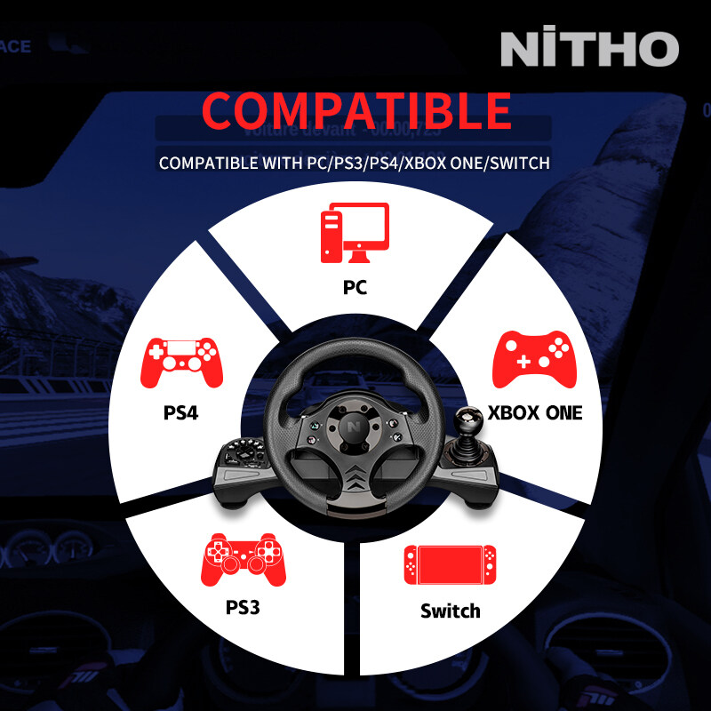 • Multi format gaming steering wheel compatible with PS4, PS3, Xbox Series X S, Xbox One (all versions), Nintendo Switch and PC