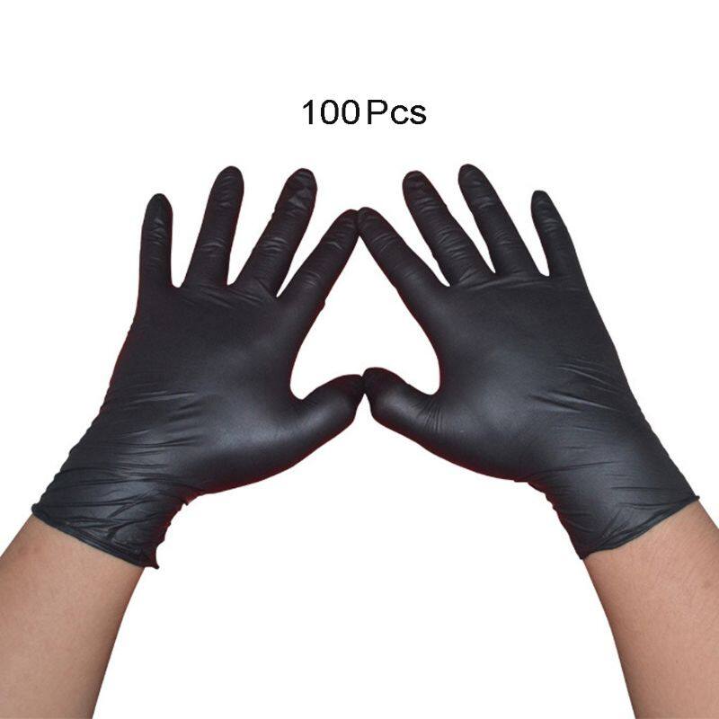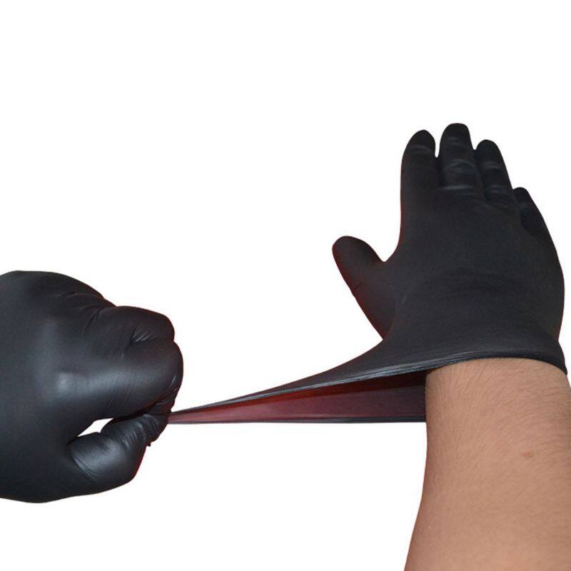 Audio Gool 100pcs Waterproof Allergy Nitrile Cleaning Gloves Rip Resistant Free Disposable Black Laboratory Work Safety Gloves