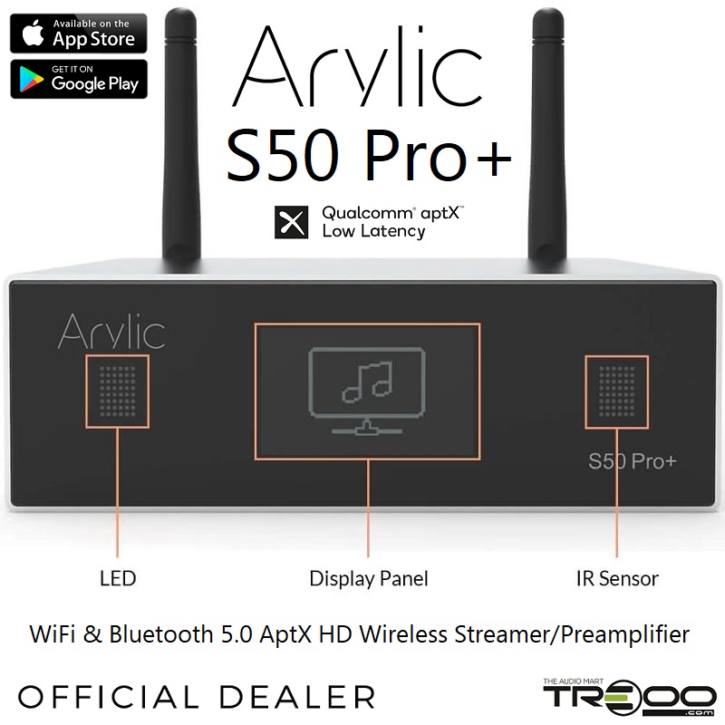 Arylic S50 Pro+ Multi-Room Wireless WiFi, Bluetooth 5.0 aptX HD/aptX Low Latency, Ethernet Network Streamer & Preamplifier