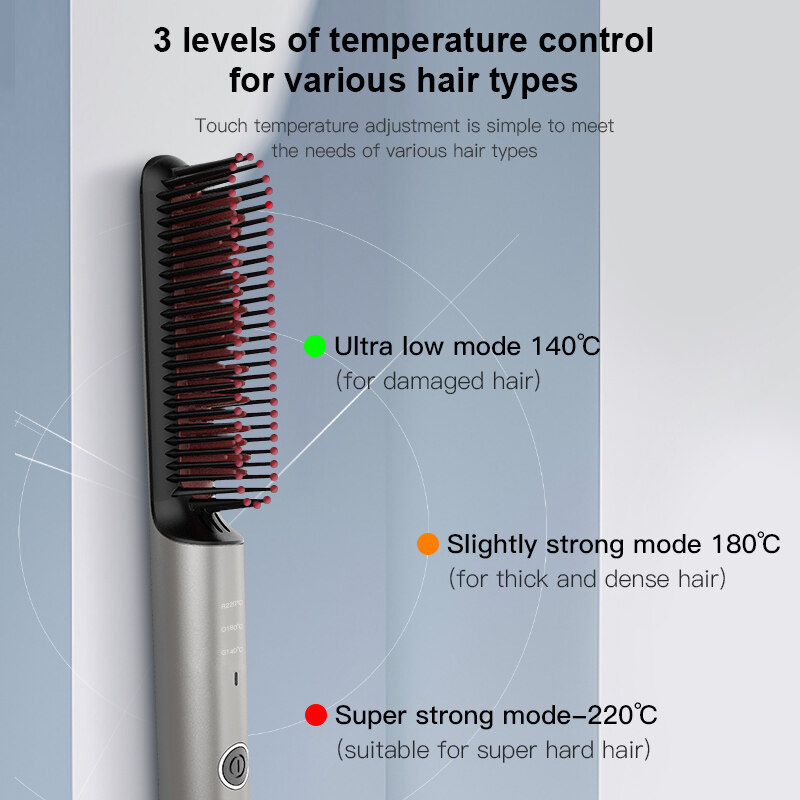 Specification:Product Name: Negative Ion Hair Straightening BrushModel: 701DRated Power: 25WVoltage: 100-240VSize: 235*28*38mmWeight: 258gTemperature: 140-220℃Features:1.Portable & Lightweight: This comb is just normal hair comb size and only 258g, very light and portable for travel or home use.2. 30 Seconds Fast Heating: It only takes 30 seconds to get heating and save your time.3. MCH Metal Ceramic Heating Body: MCH metal ceramic heating body heats fast,stably, effectively,and it has a fast thermal compensation4. Negative Ion Hair Care: Three holes will emit negative ion to moisturize the hair, help close the hair scales, increase hair luster and improve the problem of split ends5. 30 Minutes Auto Shutdown: 30 minutes auto shutdown function is designed to avoid using it for too long or forgetting to turn it off after using.6. Anti Scald Protective Teeth: Around the heating parts are protective teeth so that you can use it at ease without worrying about skin scald.Using Methods:1. Plug the cord and press the power button to turn it on.2. Press power button once to adjust temperature.3. Green light is 140℃ ,orange light is 180℃,red light is 220℃.4. Temperature is locked after 15 seconds,fast press button twice to unlock to select other temperature.5. Grab & straighten hair end with one hand. Slowly comb hair from up till down and stop at each part for one second . Note:Please comb hair with small amount each time.*Comb hair first, use together with essential oil or nutrient hair protector for better hair care.*If you want it to last long, you must use it with styling water and softenerPackage included:1 x Hair Straightening Comb1 x User Manual