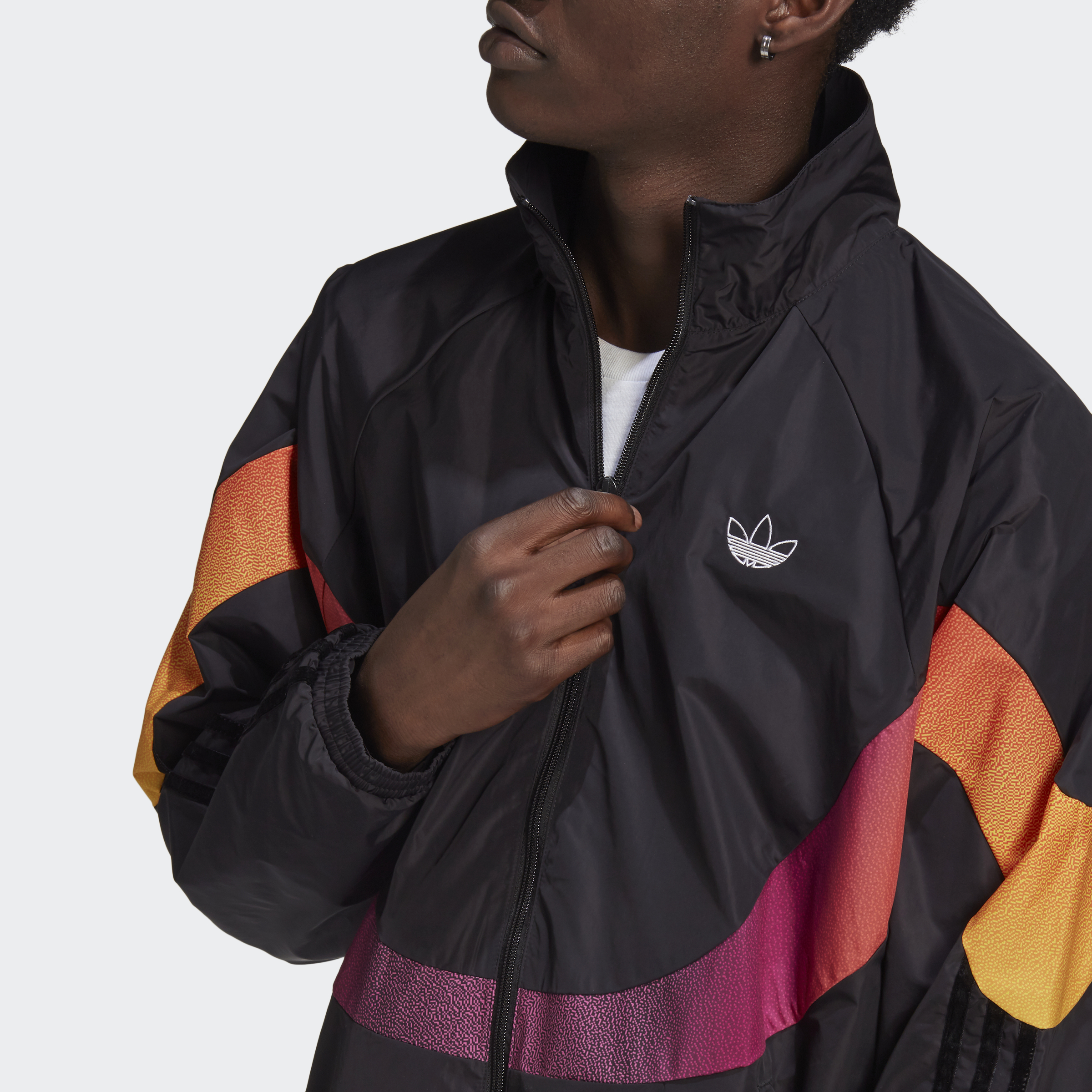 Come out on top with the winning combo of sport and total swagger. The ribbon of colours that flows around this adidas track jacket can't be missed. One, because it's bright. Two, because it's pure, undeniable steez. The loose shape layers casually. Just how you'll be chillin'. This product is made with recycled content as part of our ambition to end plastic waste.