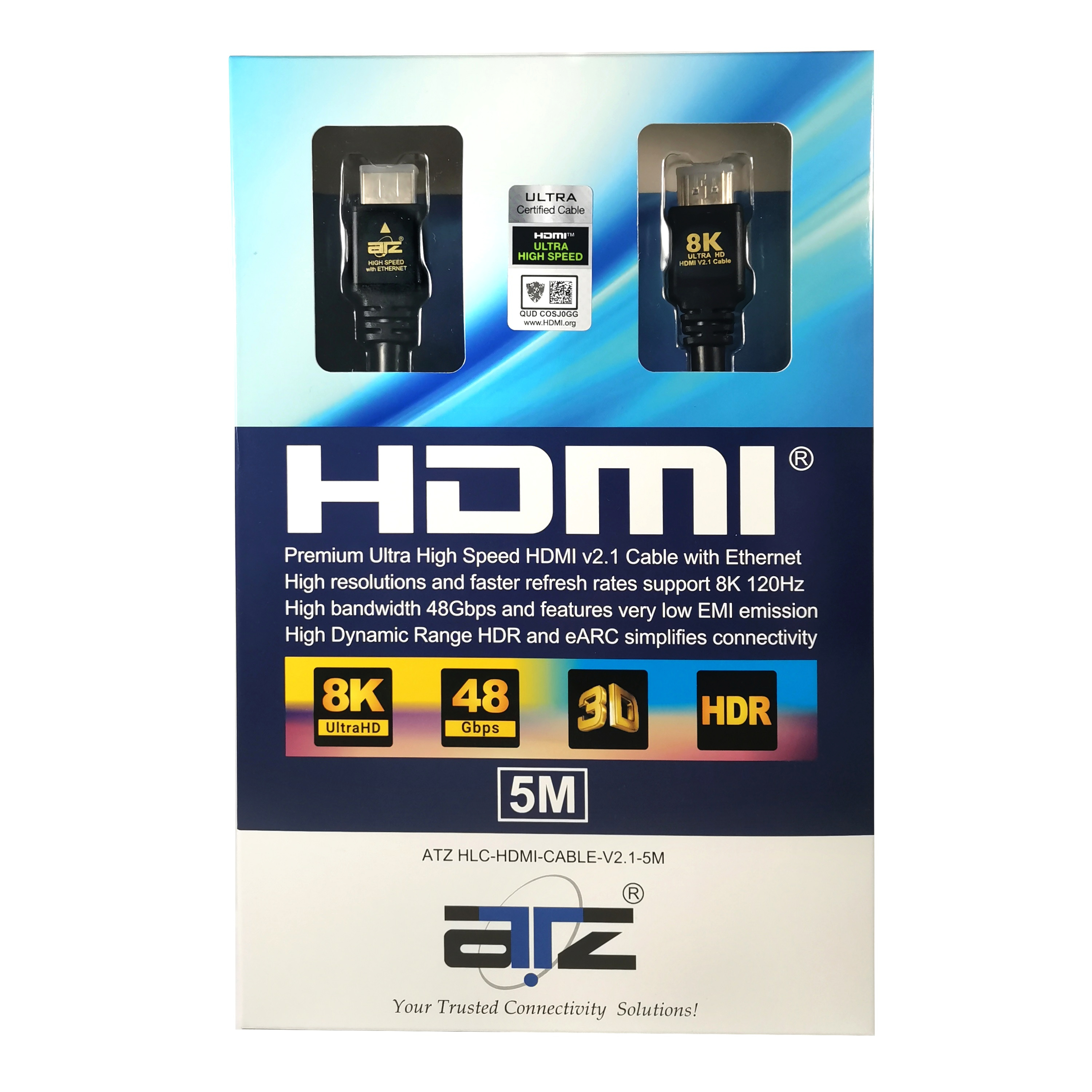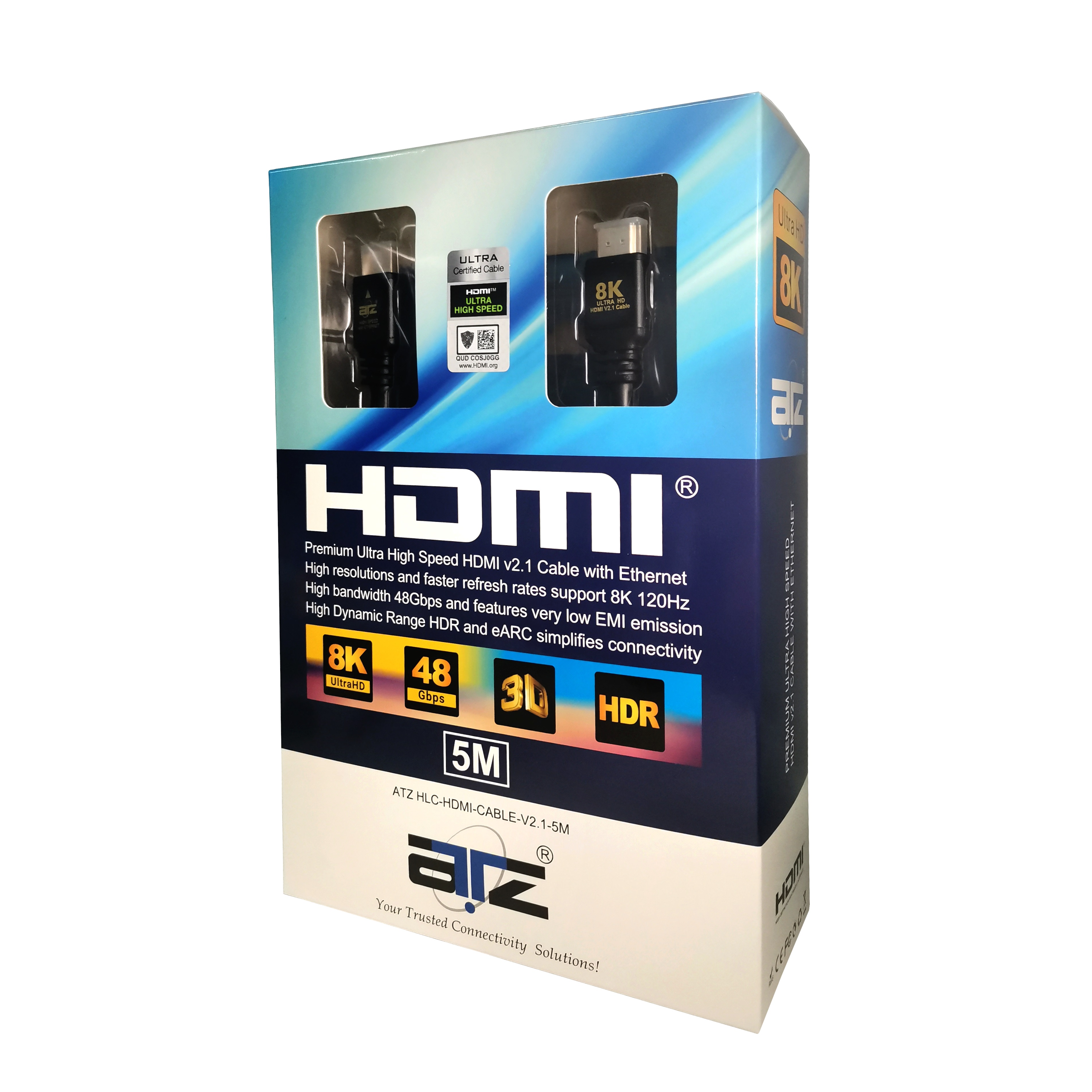 ATZ 5m HDMI Cable 8k HDMI v2.1 Ultra High Speed 8K at 120Hz 48Gbps HDMI Cable 2.1 with Ethernet - 5 meter hdmi 8k hdmi cable 8k eARC