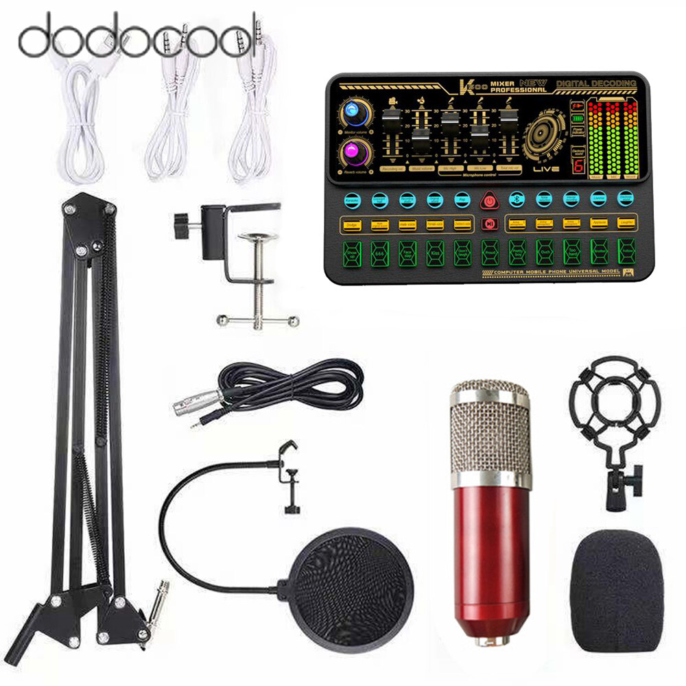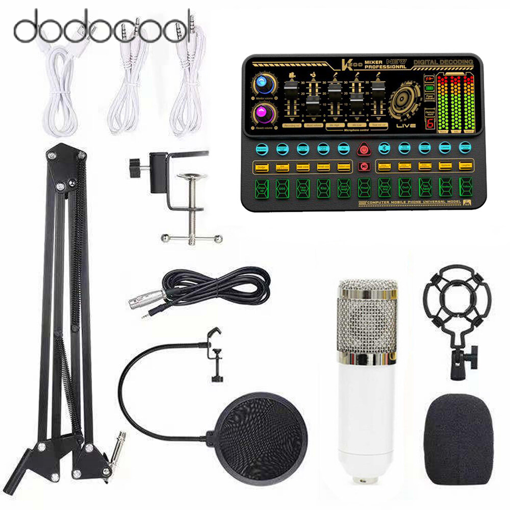 dodocool [New Arrival] Multifunctional Live SK500 Sound Card and BM800 Suspension Microphone Kit Broadcasting Recording Condenser Microphone Set Intelligent Voice Changer Device Audio Mixer for Comput