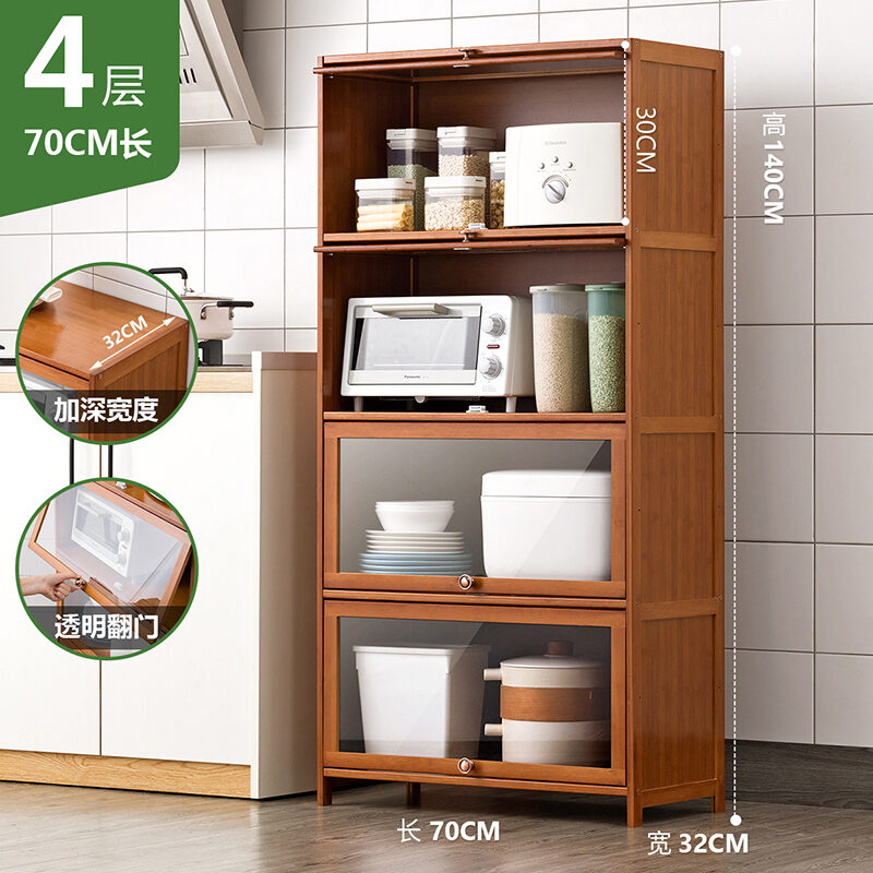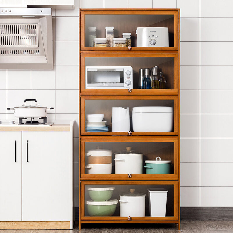 Kitchen Supplies Storage Cabinet Household Complete Floor Multi-Layer Multi-Functional Storage Rack with Door Locker Bookshelf Wood