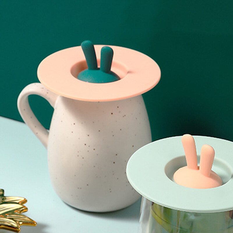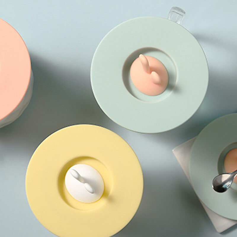 Mododo Silicone Cup Lid Heat Resistant Sealed Cover Bunny Ear Shape Leak-proof Reusable for Kids