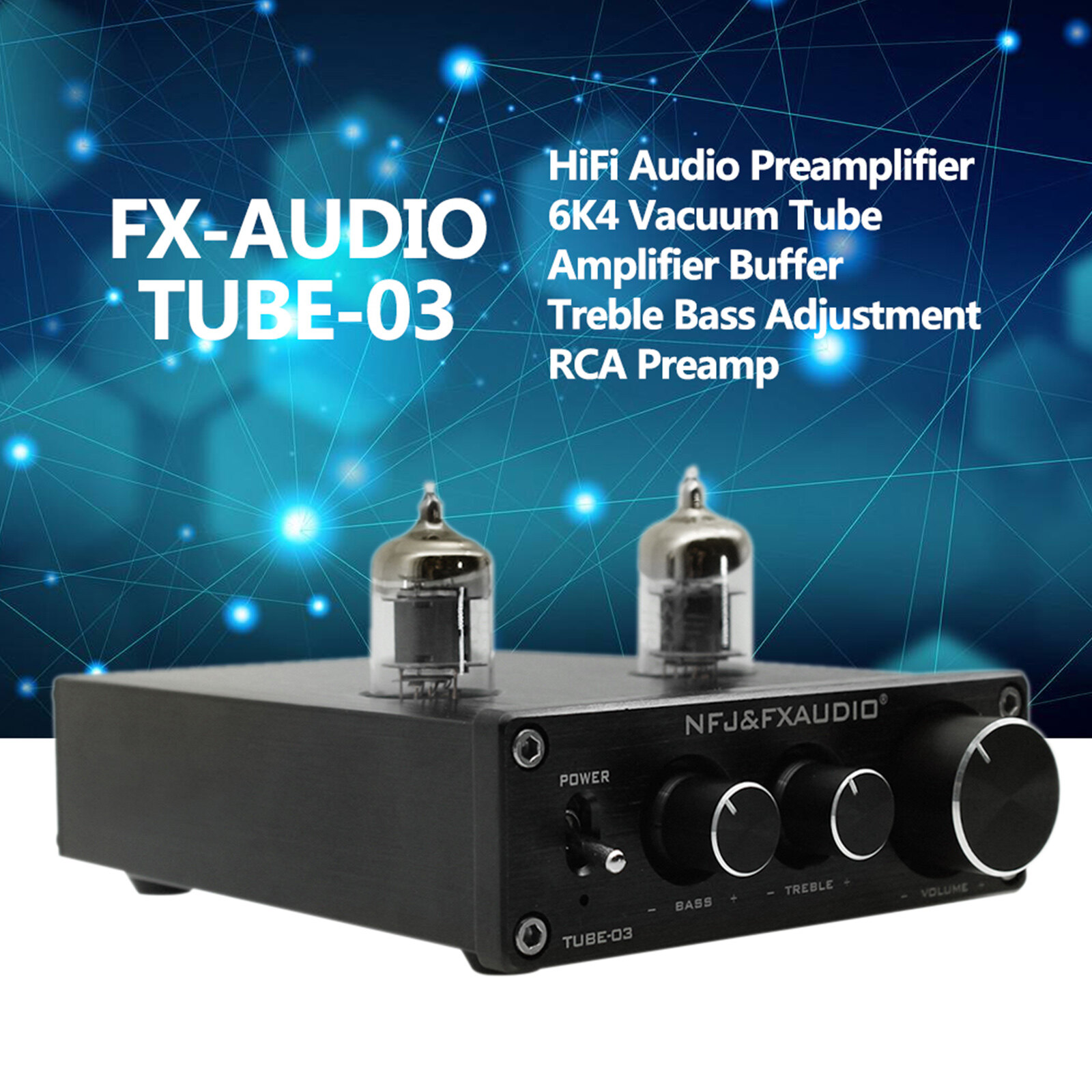 FX-AUDIO TUBE-03 Mini HiFi Audio Preamplifier 6K4 Vacuum Tube Amplifier Buffer Treble Bass Adjustment RCA Preamp