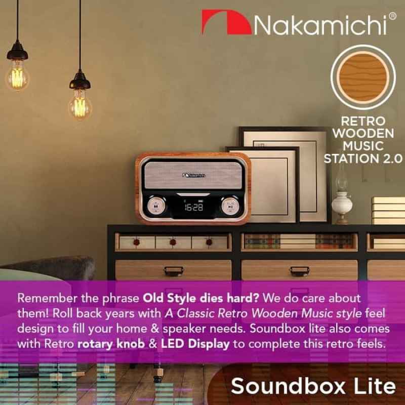 Nakamichi soundbox Lite 4 in 1 Speaker| Retro Wooden Music Station 2.0| Bluetooth| Radio FM| Aux| Micro sd| Usb| LED Display| Clear Vocals & rich Bass