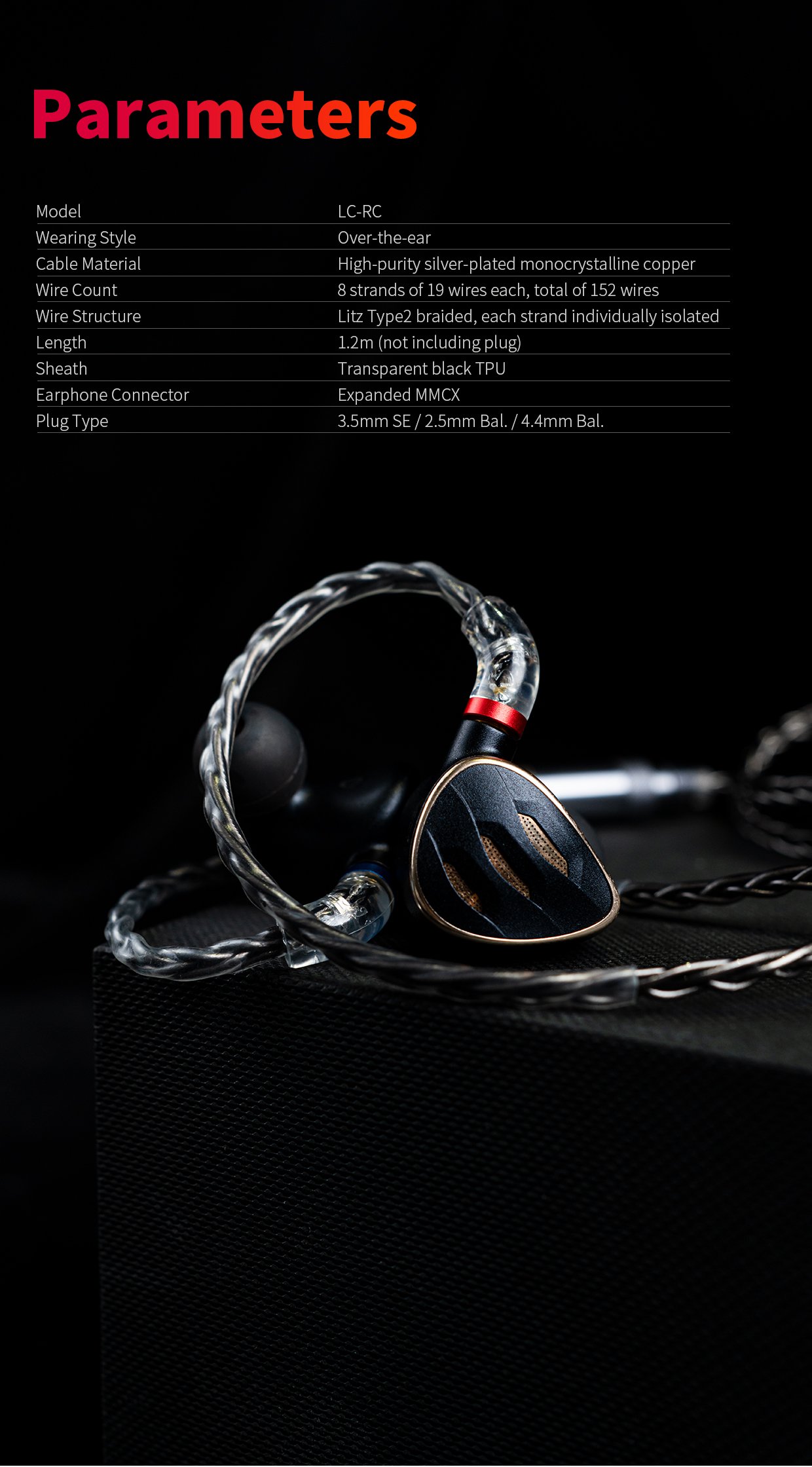 Be in trouble with keeping changing earphone cables of different types to fit different devices? The high-purity monocrystalline silver-plated copper earphone cable LC-RC with interchange audio plugs is here to help with adaptability with earphones of different audio plugs.