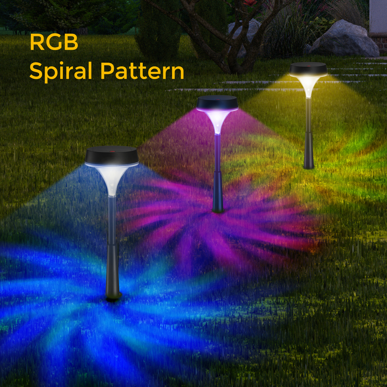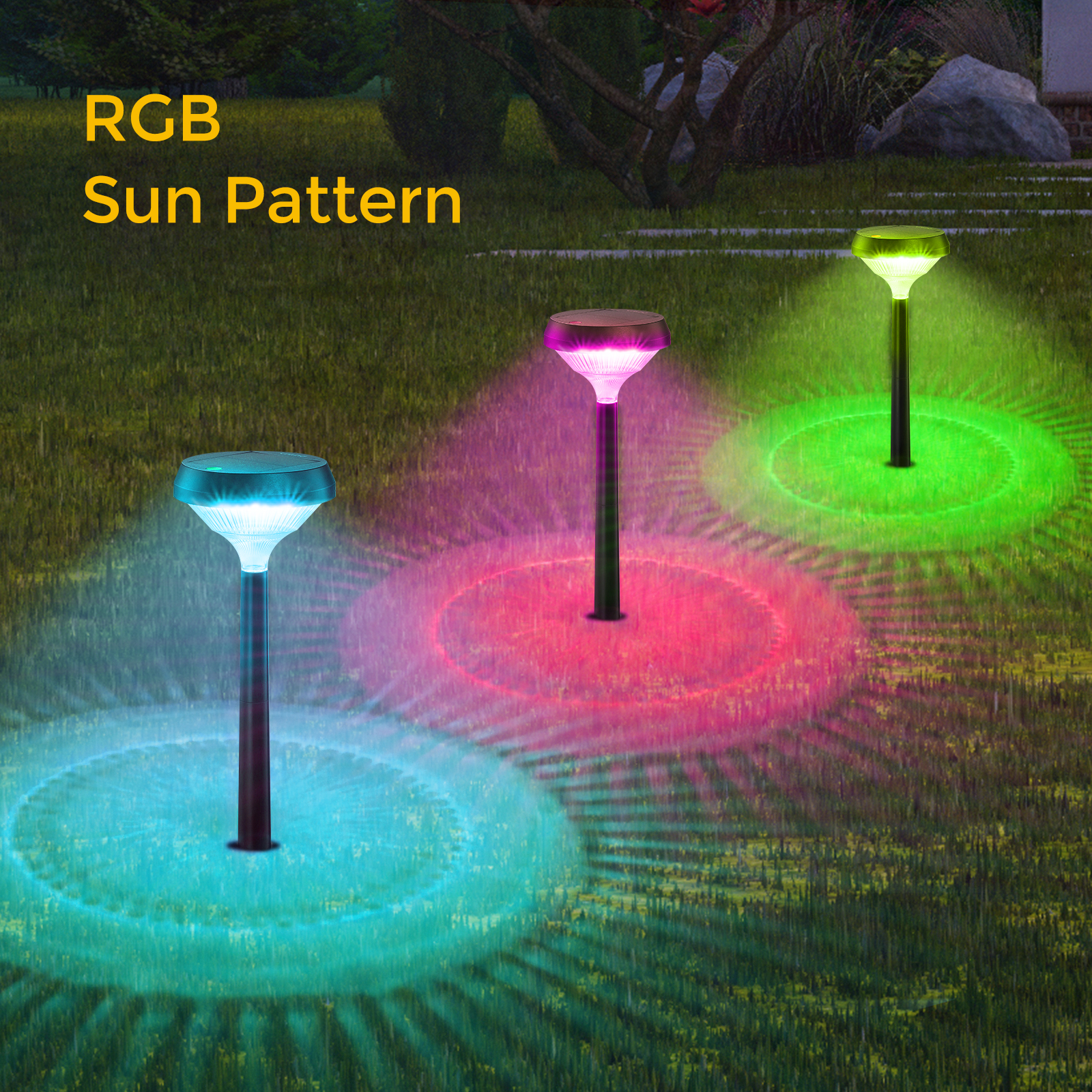 2pcs Hyderson Solar Lights 3000K RGB Emergency Outdoor Solar Garden Lights IP67 Waterproof 150lm Bright LED Landscape Light Solar Walkway Lights for Path Yard Patio Driveway Christmas [2 Years Warrant