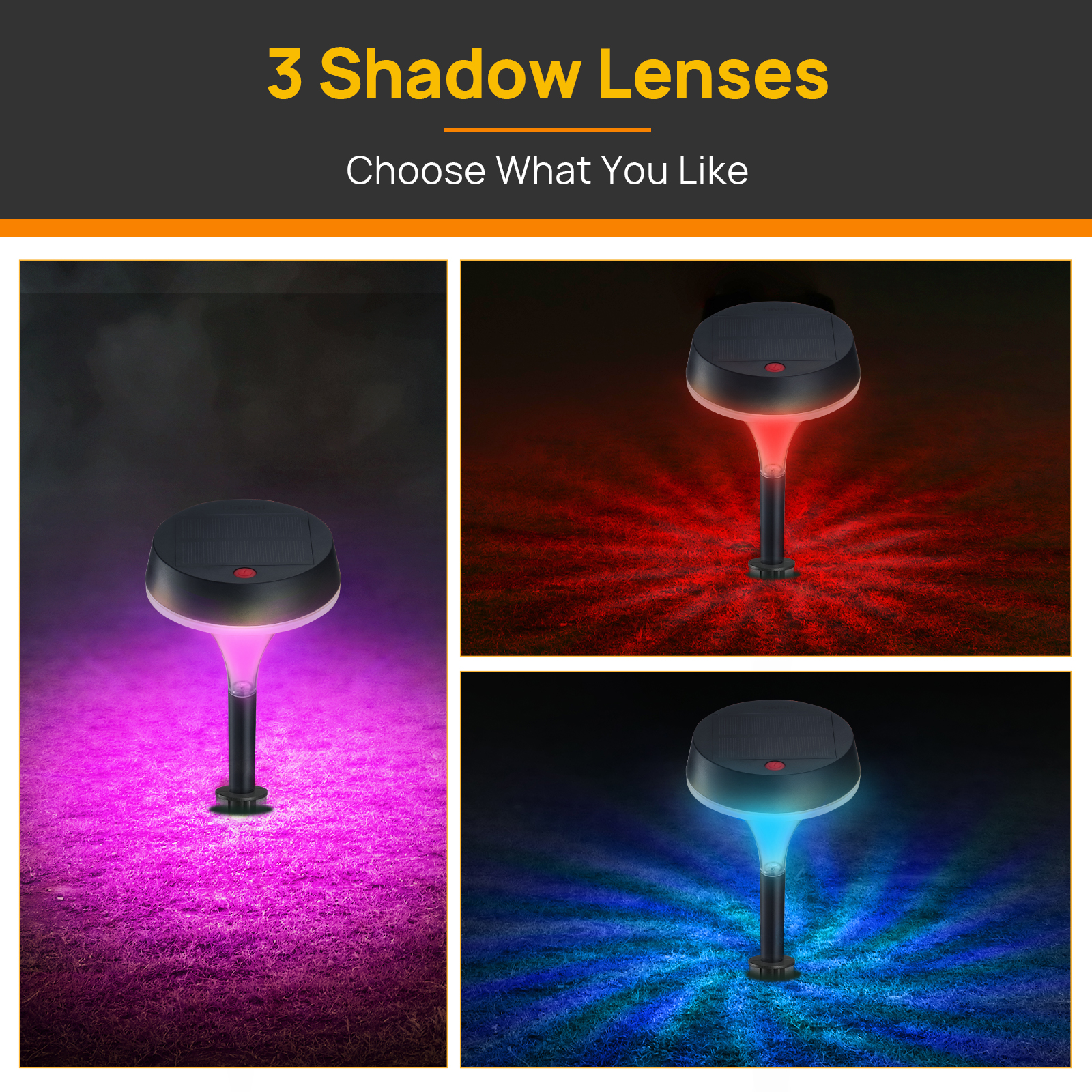 Our solar pathway light uses a unique design, which emits a beautiful circular shadow. The beautiful shades are very appropriate for the illumination and decoration of your pathway. For Model 1 we provide 3 extra shadows for you to install, you can enjoy its different effects.