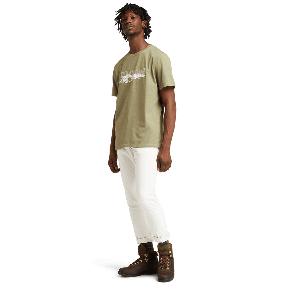 This classic men's tee features the Timberland logo on the chest and is made with organically grown cotton because we don't like toxic fertilizers in our fabrics.We engage our community in an inspiring way, proving that we are a confident, visionary leader in the world of sustainable fashion. But we always remember to stay grounded in what's practical and useful, which means we tell it like it is and keep our community in the know in a human authentic way.