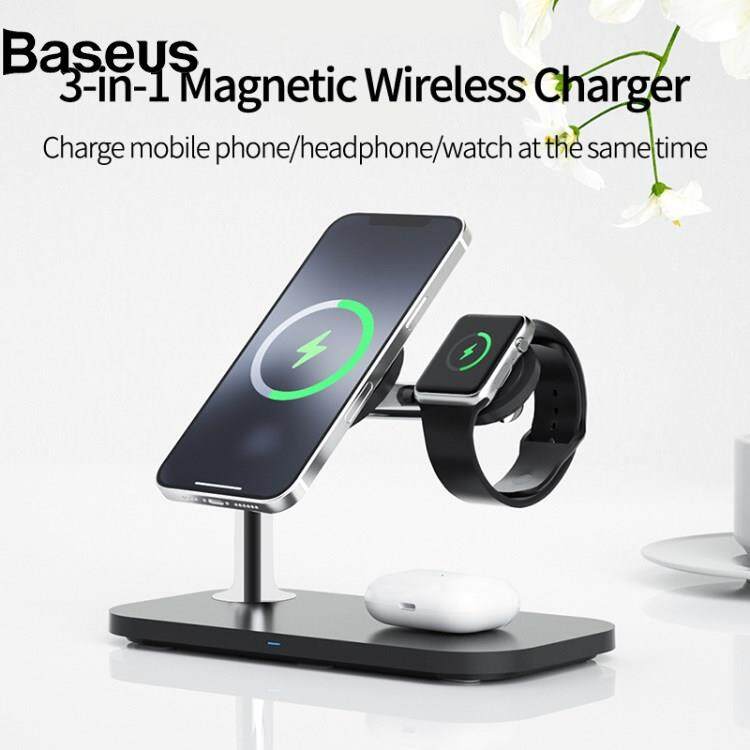 Baseus JJT-980 Desktop Charging Stand 3 in 1 Detachable Magnetic Wireless Charger for iPhone / Apple Watch / Earphones