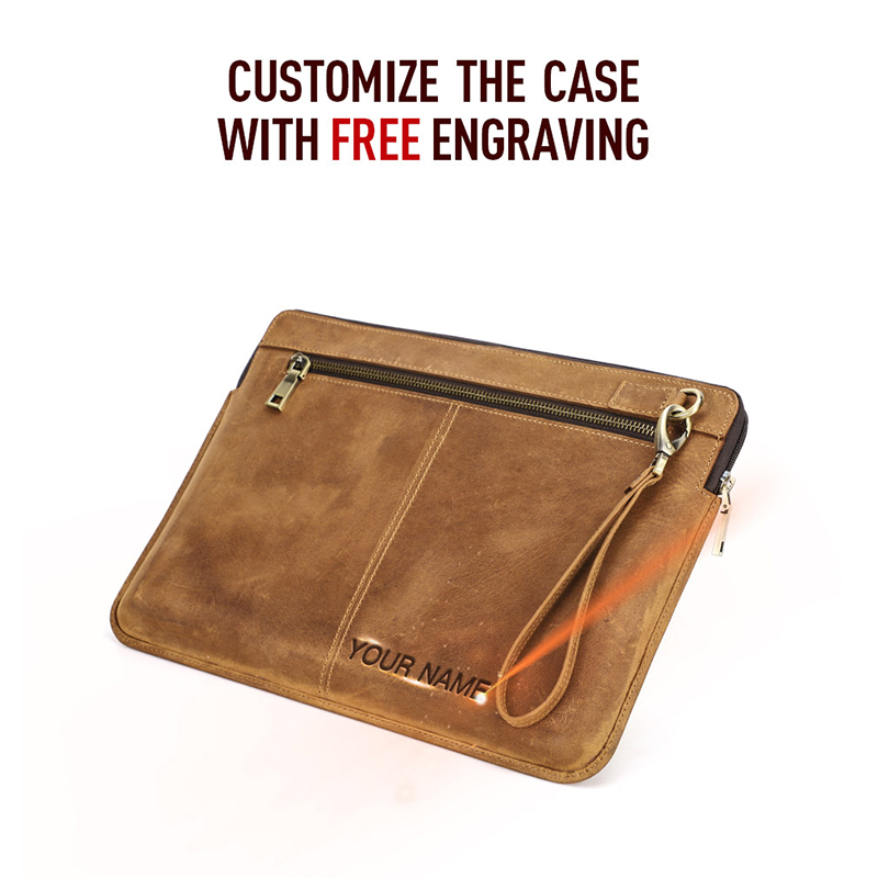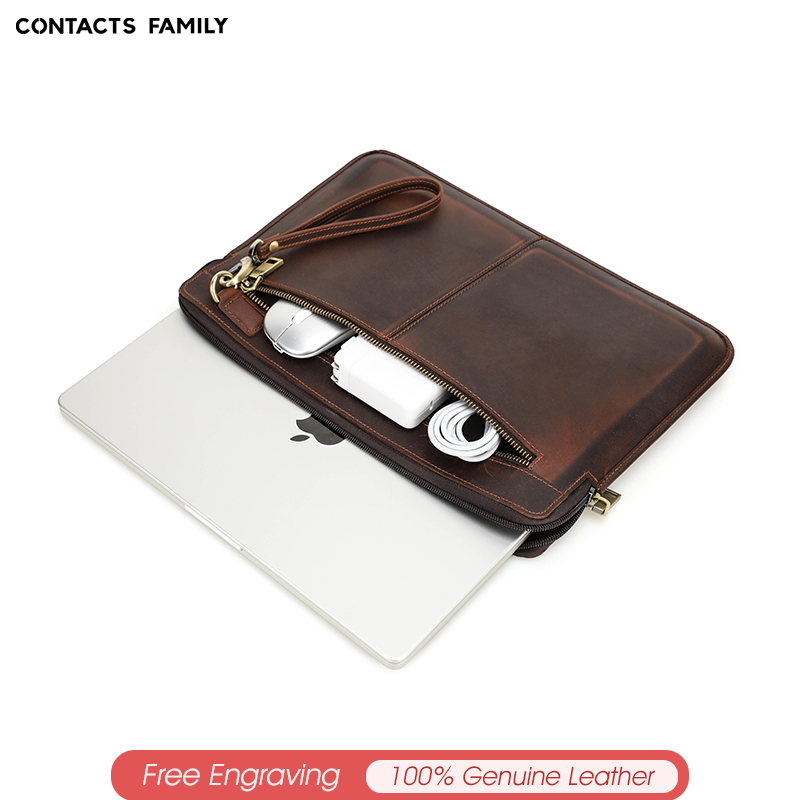 Genuine Leather Laptop Sleeve Case For Macbook Pro 14.2 Inch A2442 2021 Macbook 13-14 Inch Crazy Horse Cowhide Leather Case