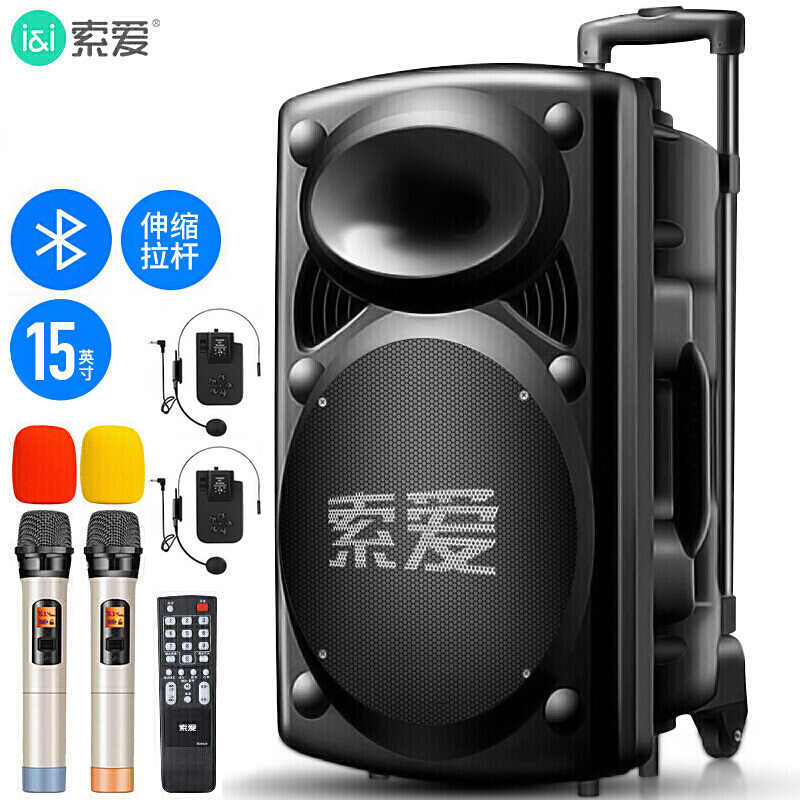 Sony Ericsson X20 15 Inch Square Dance Audio Bluetooth Speaker Outdoor Portable Audio with Wireless Microphone Mobile Pull Rod 15 Inch Heavy Subwoofer High Power Volume Karaoke Dance Performance
