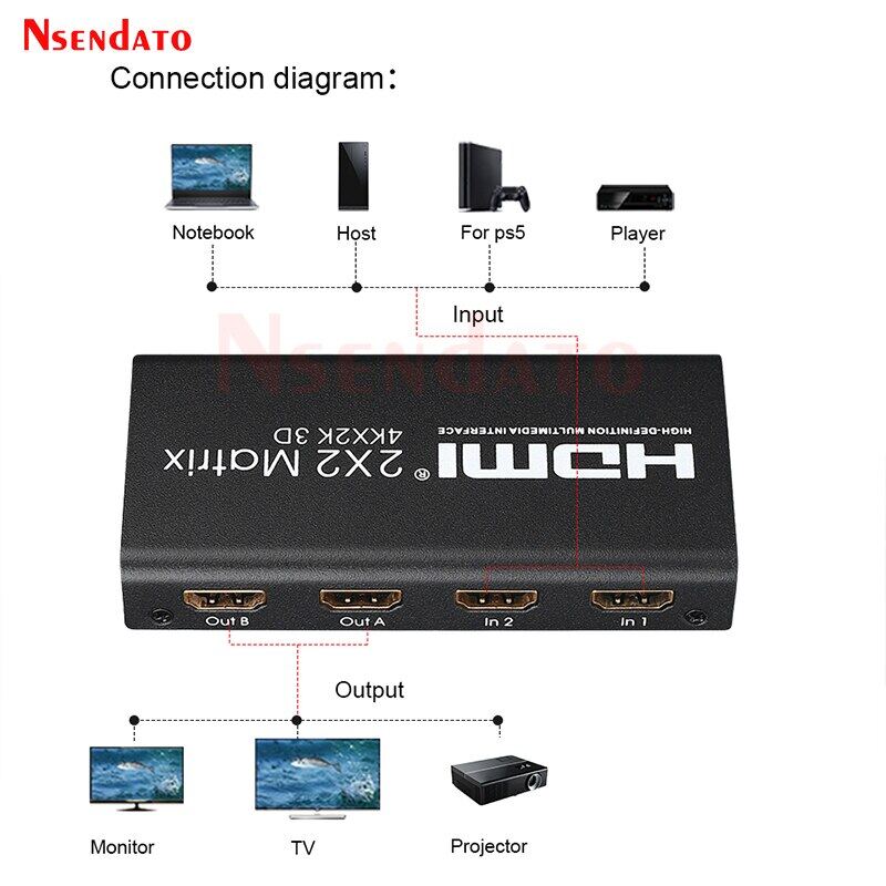 2x2 HDMI Matrix Switch Splitter 2 in 2 out 4k HDMI Matrix Switcher 2x2 HDMI Conmutador Splitter for PS5 DVD PC to HDTV Monitor