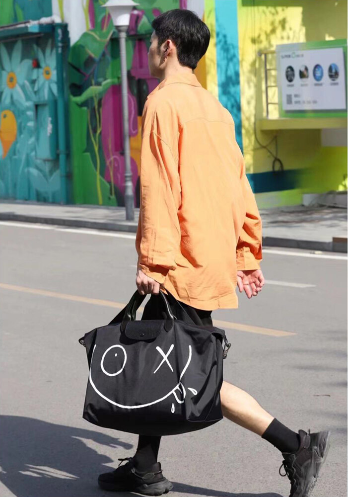 【SS22】100% original Longchamp official store bag L1624 graffiti large capacity travel bag long champ bags Duffel & Weekender Bags