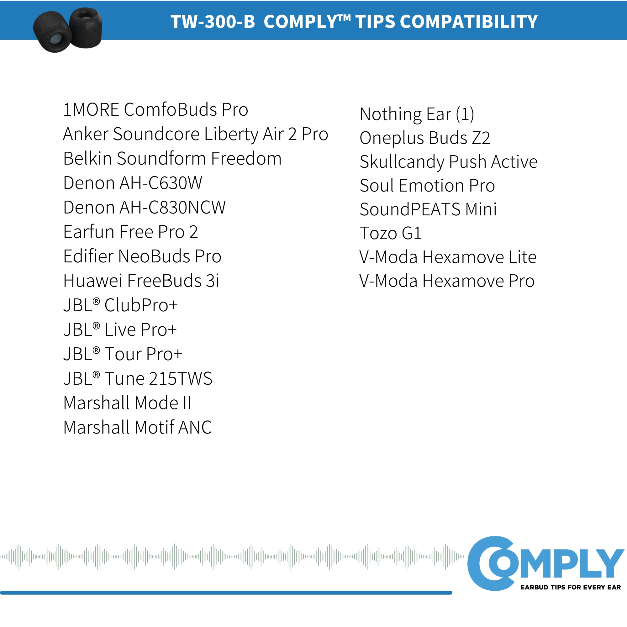 Comply TrueGrip TW-300-B Foam Eartips (for Nothing Ear,1MORE,Anker,Belkin Series and JBL Live Pro etc. True Wireless Earbuds)