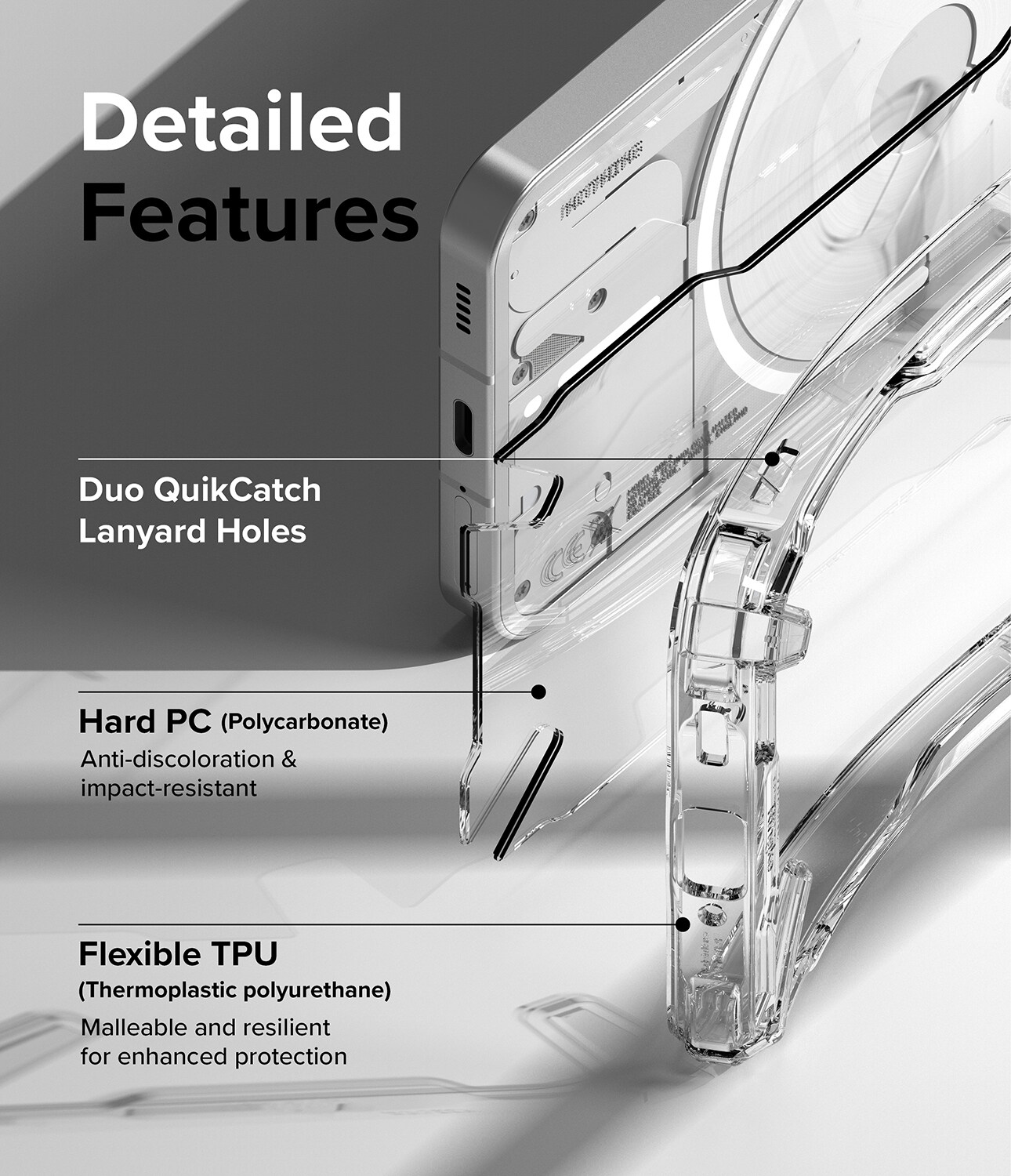 Perfectly contour and encompass the device in clear protection to reveal its natural shape and form. The upgraded bumper technology amplifies impact resistance through meticulously designed corner supports. Each corner features an added defense structure that offers an extra layer of security.