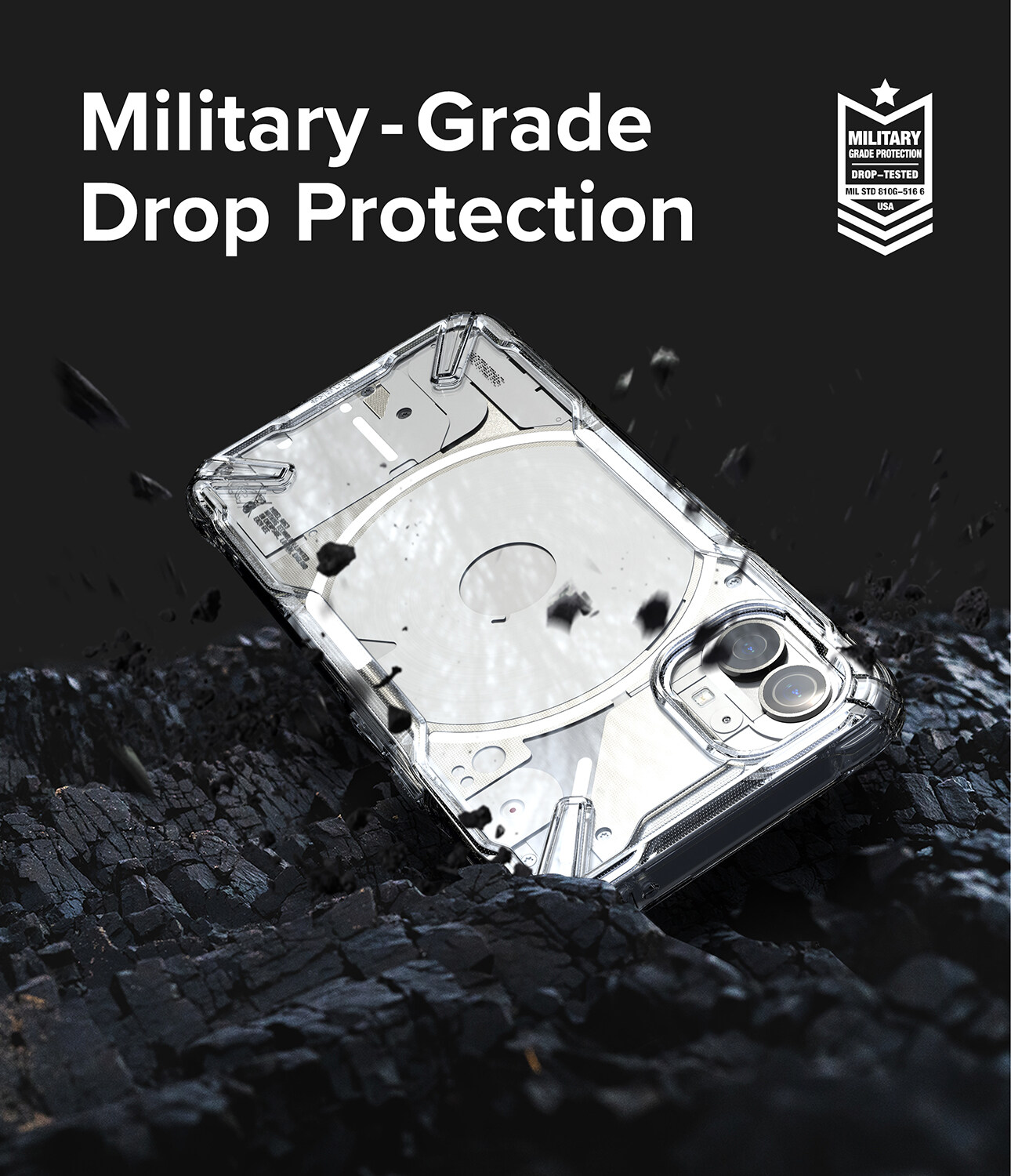 Ringke FUSION-X offers MIL-STD 810G - 516.6 Certified Military Grade Drop Protection. *Phones survived professional drop test from a height of 4 feet (48-inches) onto an impact surface 26 times.