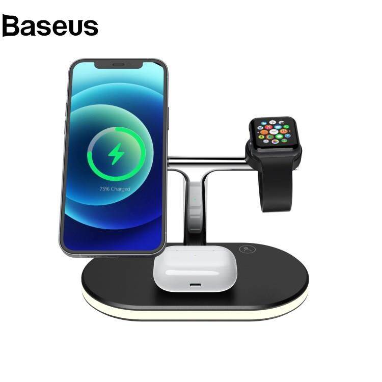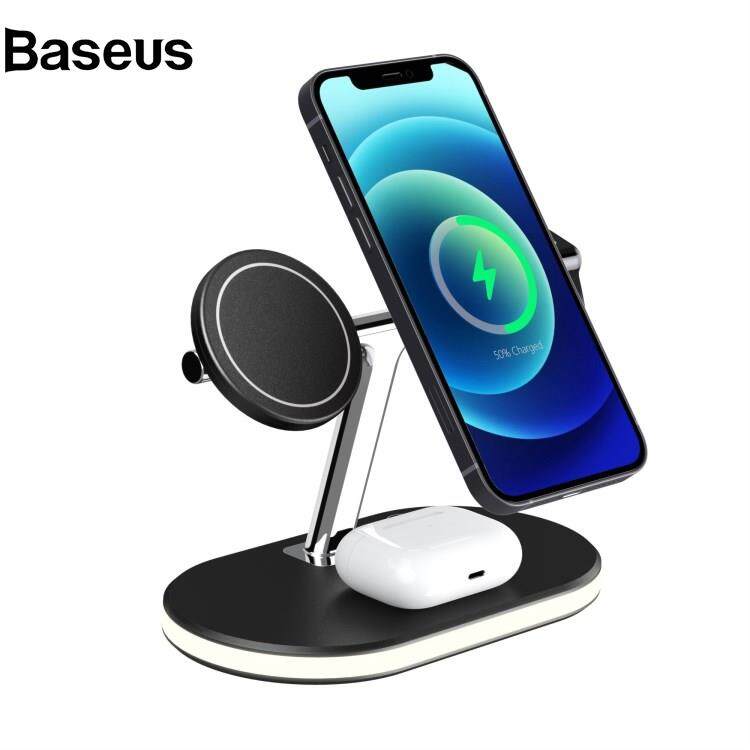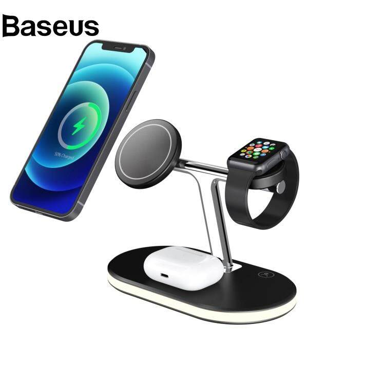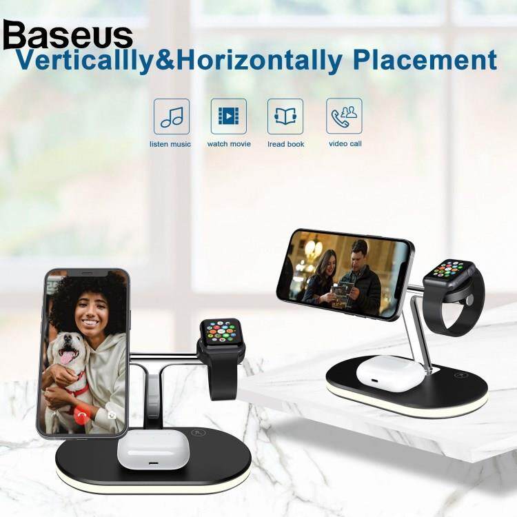 Baseus C300 3 in 1 15W Fast Charging Desktop Station with LED Night Light Magnetic Wirless Charger for Qi-enabled Mobile Phone / AirPods / Apple Watch