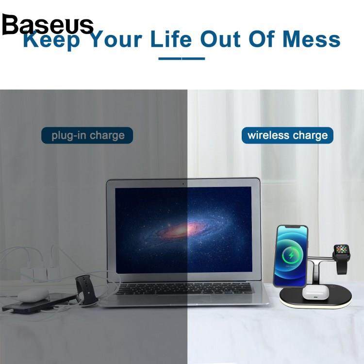 Baseus JJT-980 Desktop Charging Stand 3 in 1 Detachable Magnetic Wireless Charger for iPhone / Apple Watch / Earphones