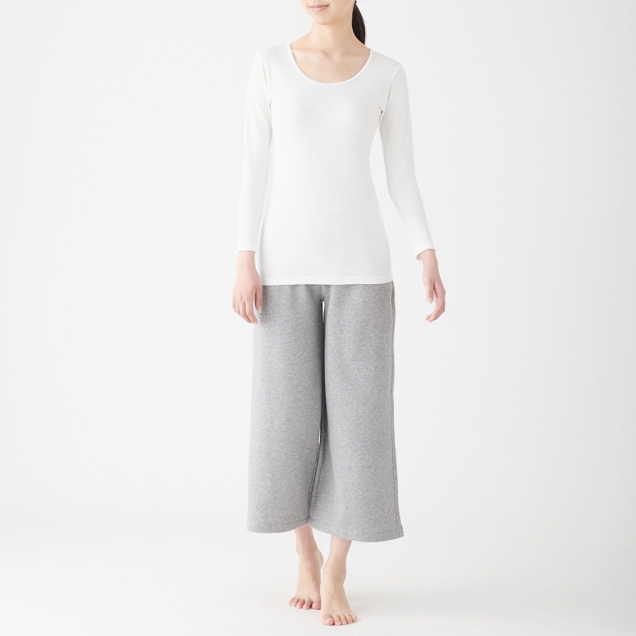 MUJI Ladies Cotton Wool Warm U Neck 4/5 Sleeve T Shirt