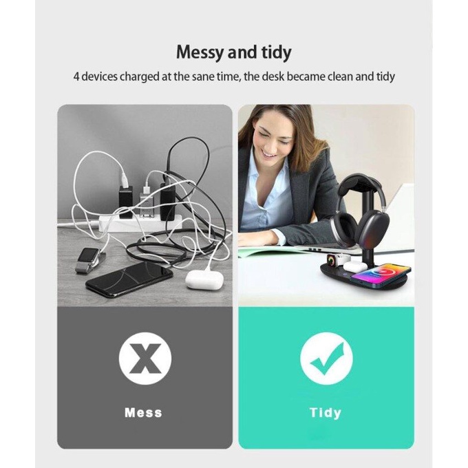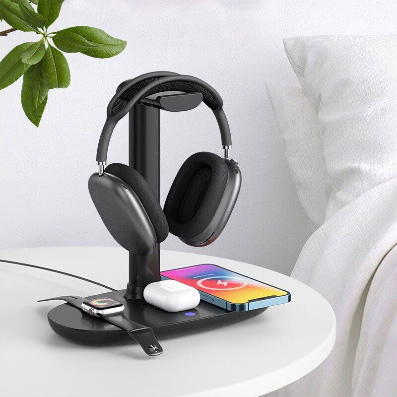 • - 4 IN 1 15W Fast Charging Dock and Headphone Rack, Space up your desk space and improve your desk tidiness.