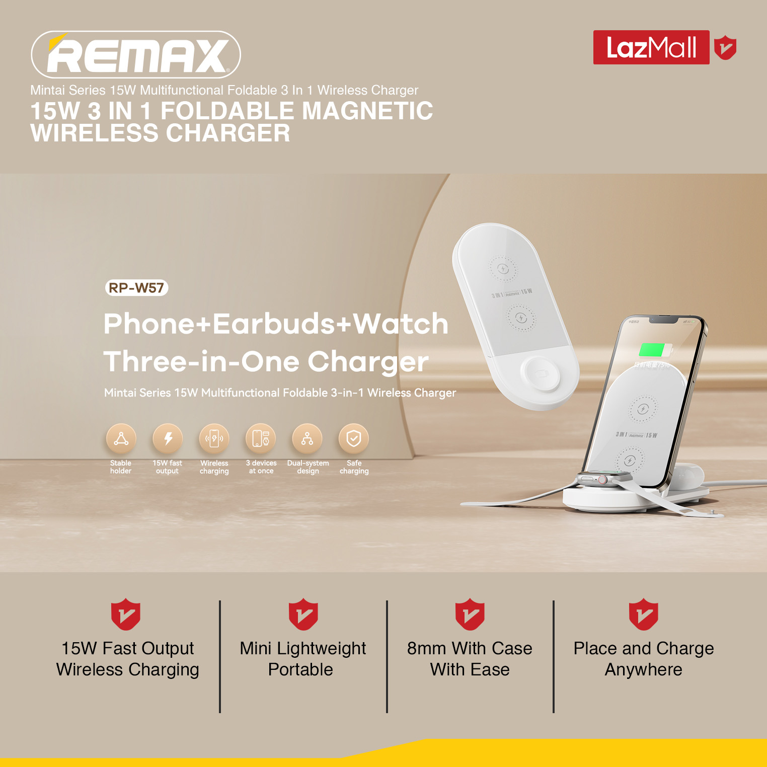 [Remax Energy] RP-W57 Mintai Series 15W Multifunctional Foldable 3-In-1 Wireless Charger