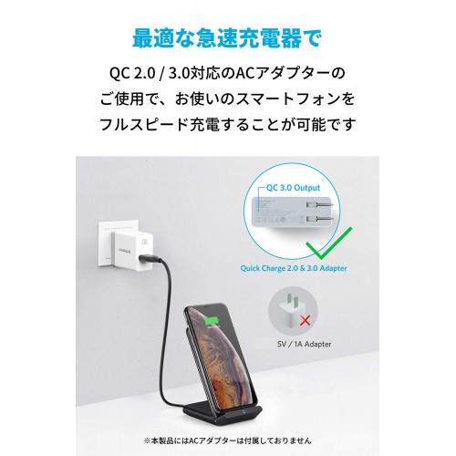 Anker PowerWave 10 Stand (improved version) Wireless charger Qi certified iPhone 12/12 Pro Galaxy Various support Up to 10W output (black)
