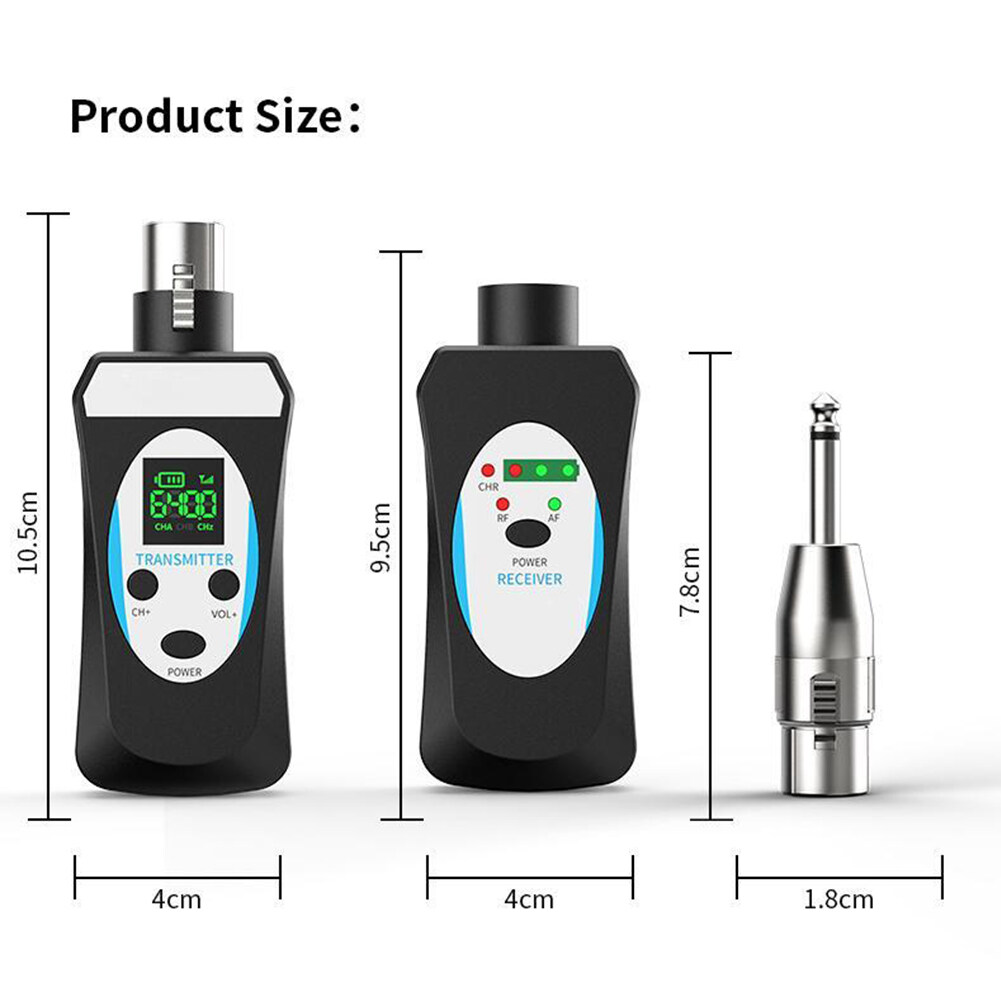 1. Advantages and Scenarios: The microphone wireless transceiver solves the wireless audio signal transmission between the microphone and the audio, the mixer, and the sound card, realizing the expansion effect of wireless audio transmission, and solving the traditional wiring mode. This product is suitable for stage performances, outdoor entertainment, speeches, outdoor performances, and other places