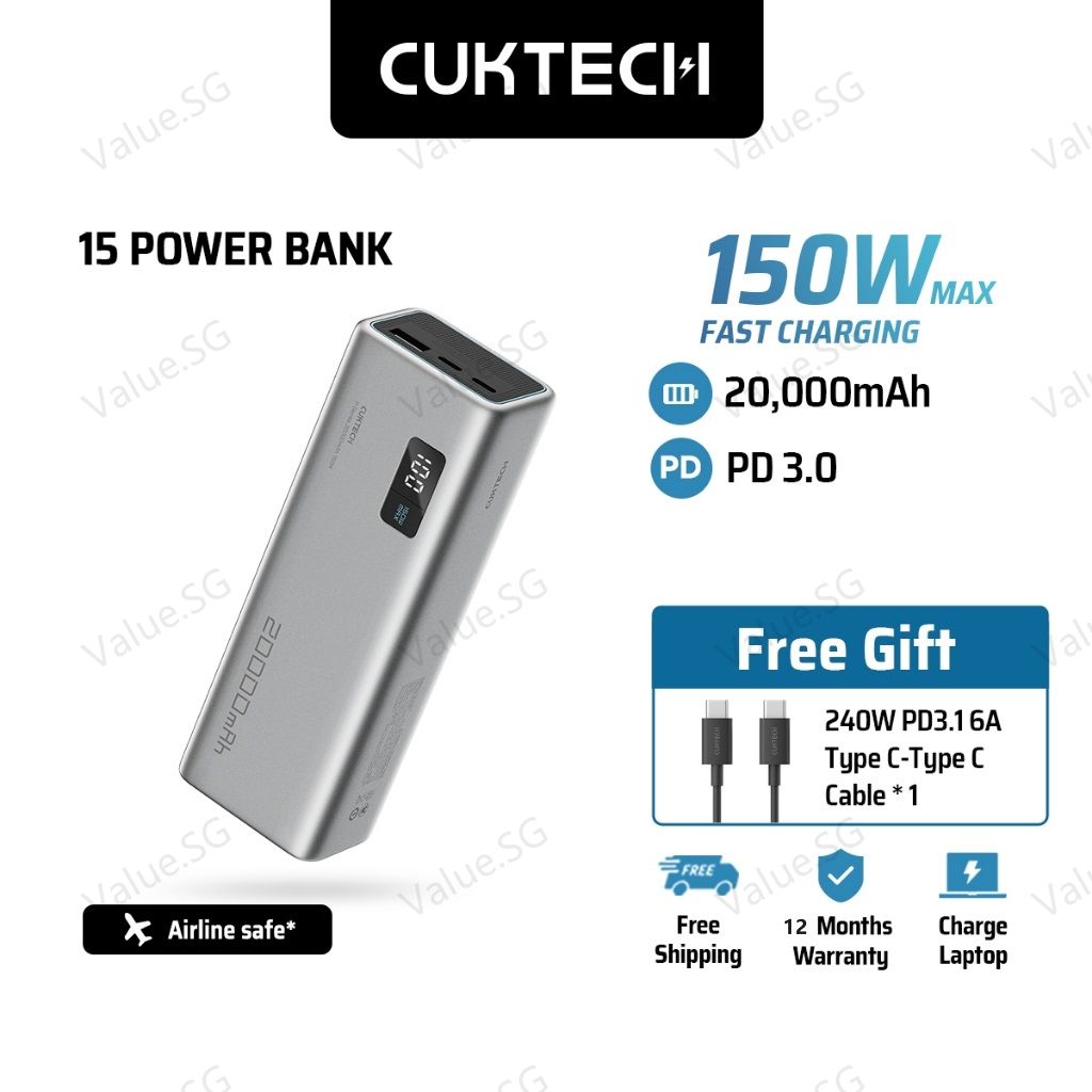 【Ready Stock and Ship in 0-1 Day】CUKTECH / ZMI 15SE 100W Max Powerbank/Power Bank/ Can Charge Most Laptops/ 1 Year SG Warranty