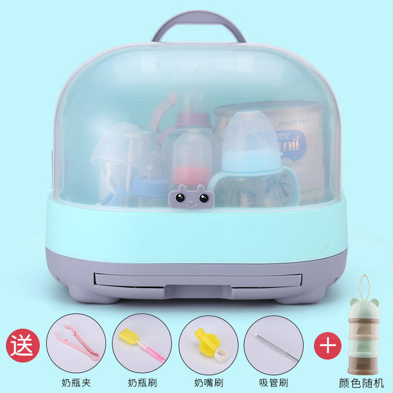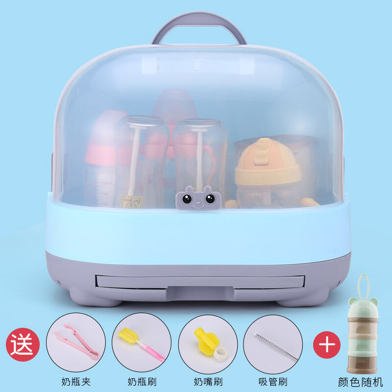 Baby Bottle Storage Box Portable Dustproof Draining Rack with Lid Baby Tableware Milk Powder Storage Box Shelf