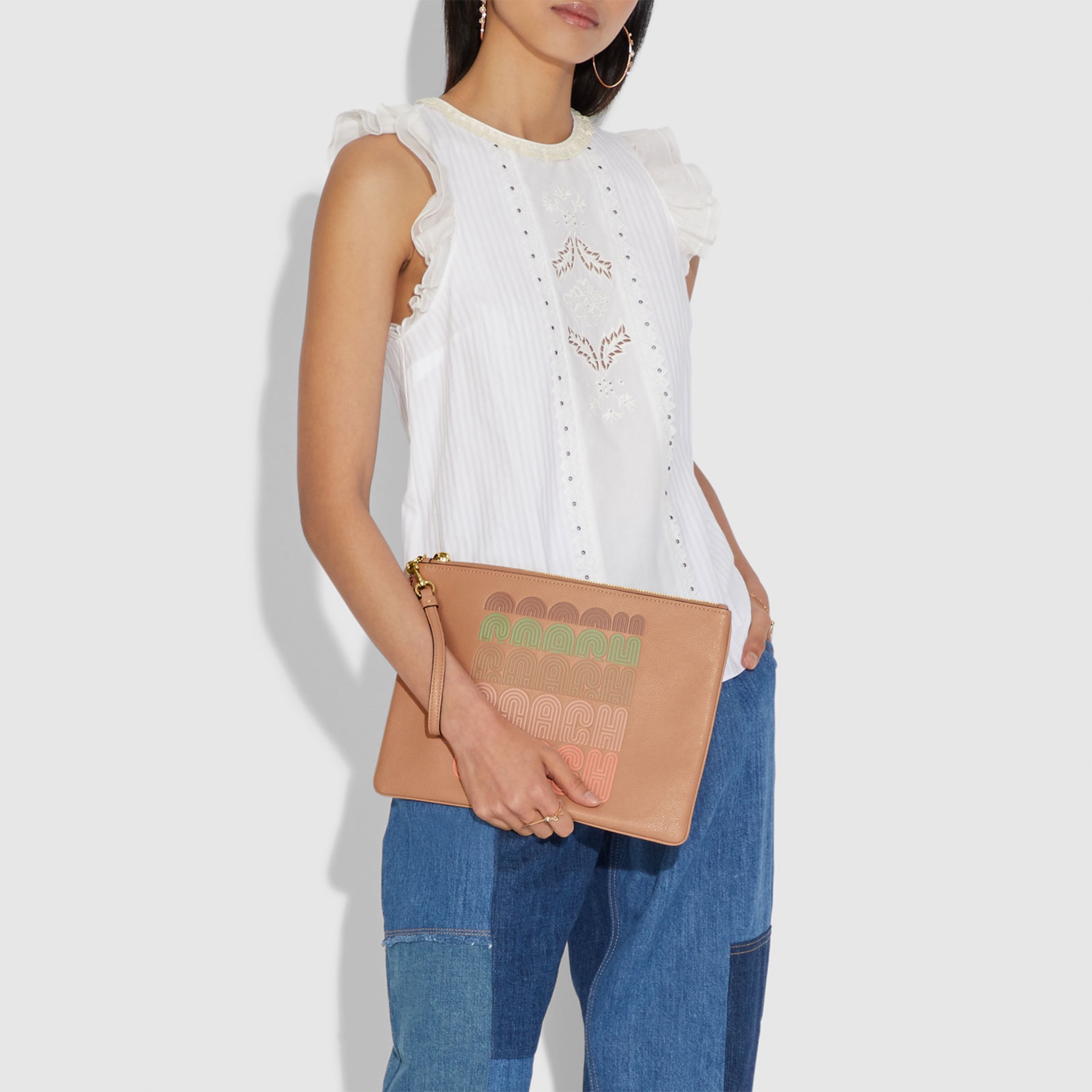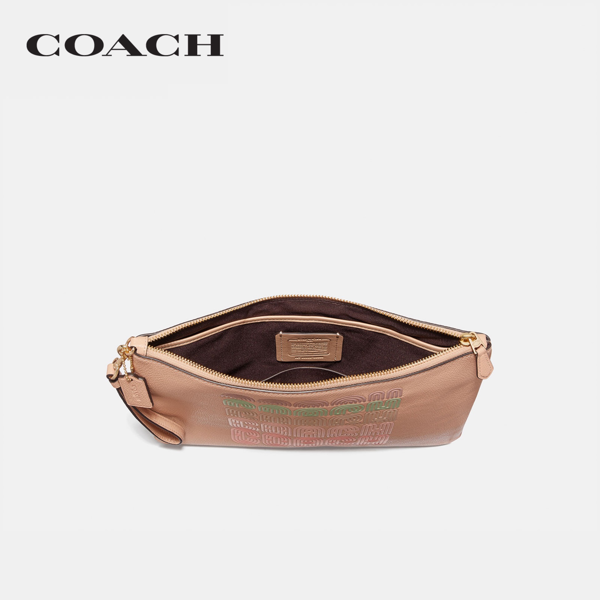 Coach Wristlet In Gift Box Large Wristlet Large Corner Zip Faded Blush Beige # 3888