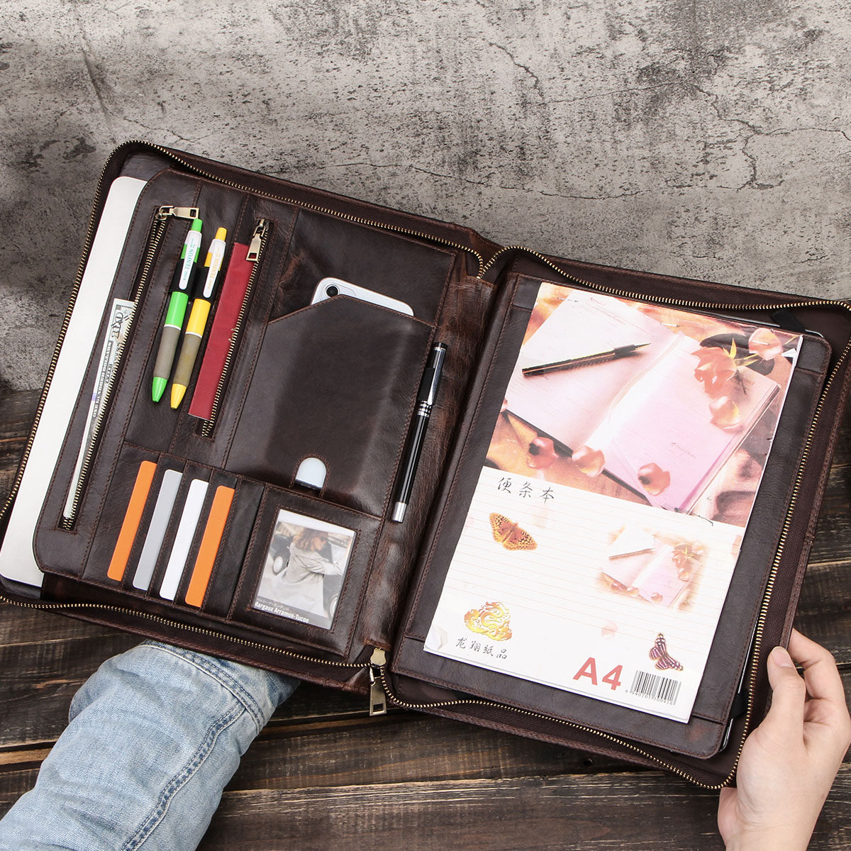 CONTACT'S FAMILY Retro Padfolio Cow Leather Case for iPad Pro 12.9 2020 Journal Document A4 Portfolio bag For 13.3” Macbook Air